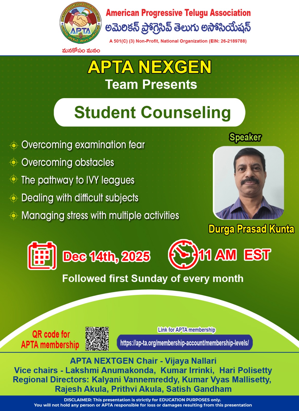 Date 04 Jan 2026 Time 11:00 am - 12:00 pm APTA NextGen – Student Counseling-Dealing with difficult subjects Share this event + Add to Google Calendar + iCal export