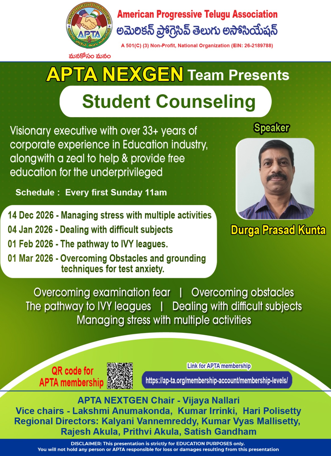 Date 01 Mar 2026 Time 11:00 am - 12:00 pm APTA NextGen – Student Counseling-Overcoming Obstacles & grounding techniques for test anxiety Share this event + Add to Google Calendar + iCal export